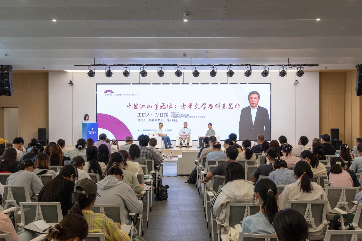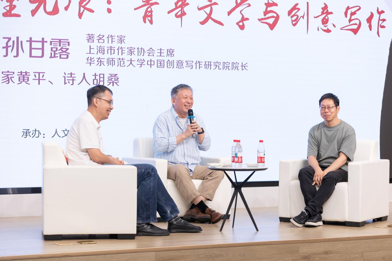 9月18日下午,著名作家孙甘露做客我校胡瑗大讲堂,与华东师范大学中文系副主任、中国创意写作研究院副院长黄平,同济大学文艺学与比较文学研究所副所长、诗学研究中心副主任胡桑对谈,与我校师生共话文学感悟与创意写作。讲座由校党委委员、宣传部部长朱小芳主持。